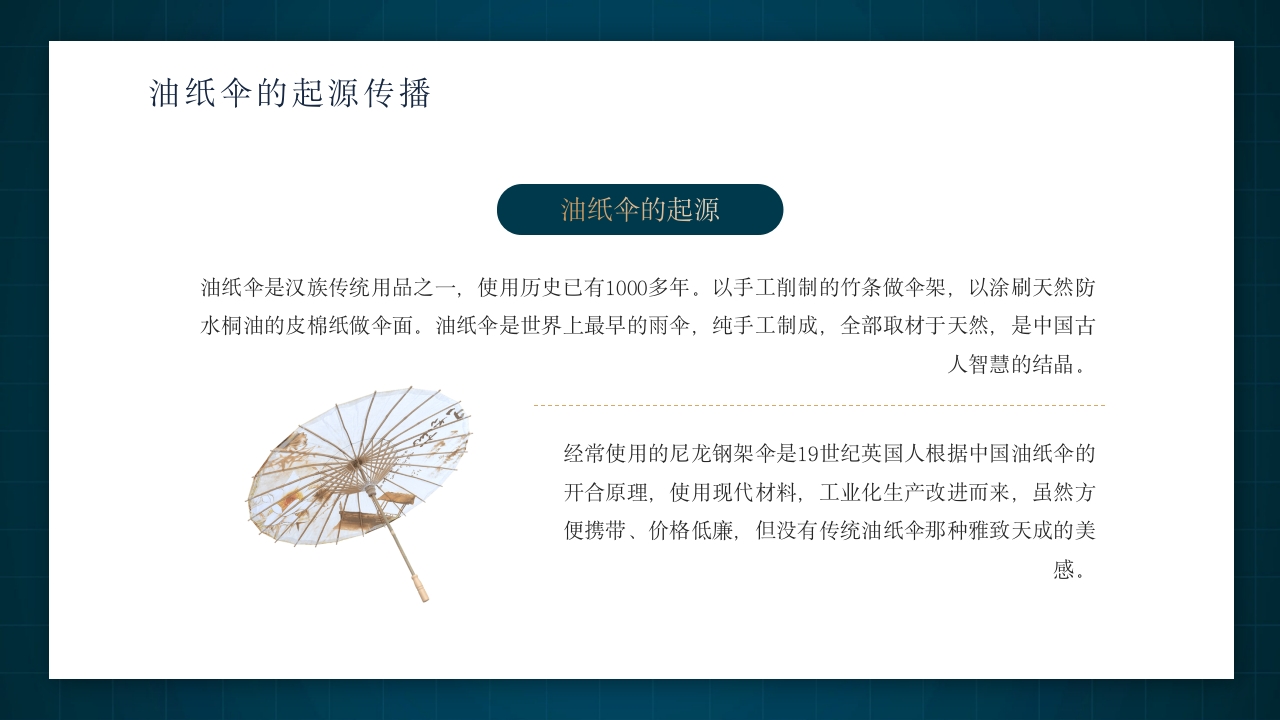 中国非物质文化遗产非遗油纸伞介绍PPTPPT课件